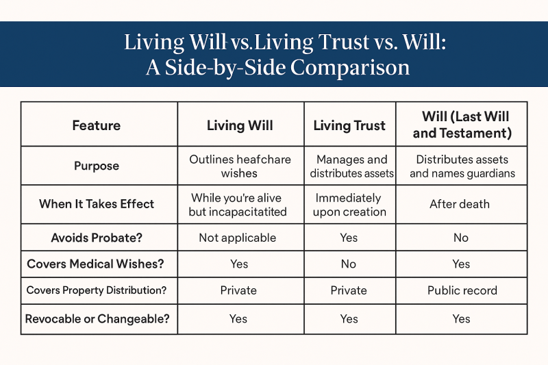Living Will vs. Living Trust vs. Will: A Side-by-Side Comparison